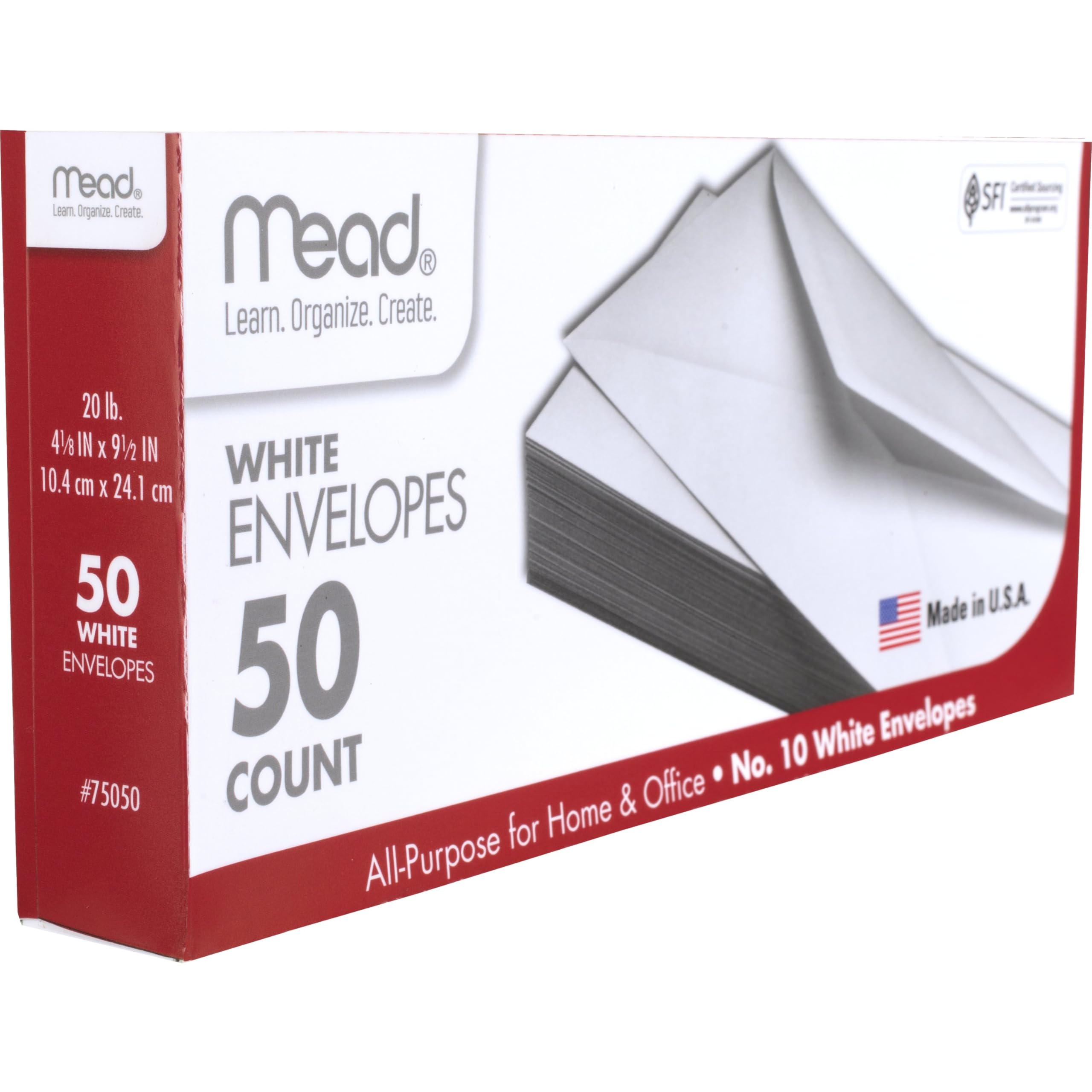 Mead #10 Envelopes, Letter Size, 4-1/8" x 9-1/2", Gummed Closure, White All-Purpose for Home & Office Mail, 50 Count (75050)